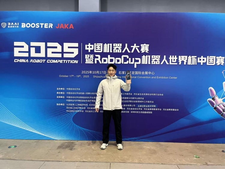 2025年10月16日至19日,2025 中国机器人大赛暨 RoboCup 机器人世界杯中国赛(中国机器人大赛赛区)在河北石家庄举行,该赛事入选中国高等教育学会发布的《全国普通高校学科竞赛排行榜》,应用技术学院选派2支队伍参加“人工智能数字作品创意赛-人工智能短视频”比赛,选派4支队伍参加“智能机器人体感竞技”比赛,荣获全国季军1项、国家级一等奖2项,二等奖2项、三等奖2项的优异成绩。其中,“神游折花”队荣获全国季军!