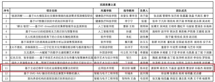 在成果价值领域,我院郑洁琼老师指导的“宠情视界”:宠物与情感需求的市场分析项目荣获“成果价值之星”称号。该项目紧扣当下社会宠物经济与情感需求融合的发展趋势,通过市场调研与价值评估,梳理行业痛点与机遇,既具学术价值,又为企业决策提供依据,彰显学子专业与市场结合能力。在实践竞赛领域,由郑洁琼老师和杨霞老师联合指导的“基于主动迁移学习的农业病害检测算法的研究”项目表现亮眼,成功摘得“实践竞赛之星”称号。该项目团队直面传统检测方法效率低、准确率差等问题,创新性地将主动学习与迁移学习技术融入农业病害检测场景,其成果在多个农业试点场景中得到验证,展现出广阔的应用前景。