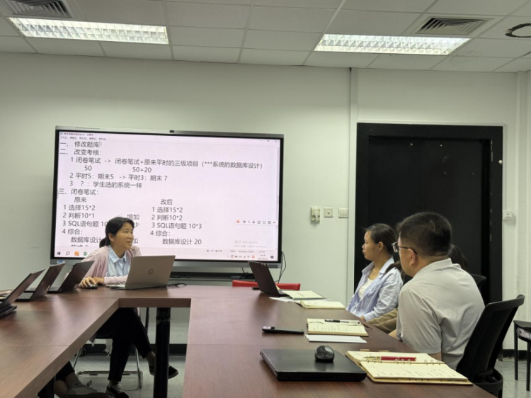 为深度剖析24-25学年5门成绩异常课程的问题、优化考核方式,并探索AI在教学中的赋能路径,我院于9月24日13:30在A8-104召开了2025-2026学年第一学期课程考核改革工作研讨会。应用技术学院院长张冬青,副院长宋晓莹、贾宁,计算机技术系副主任姜敏、裴丽君出席会议,各课程组骨干教师参会。