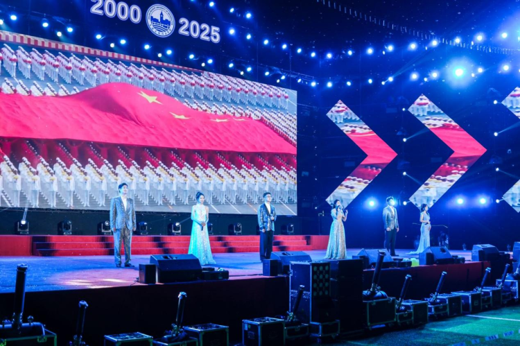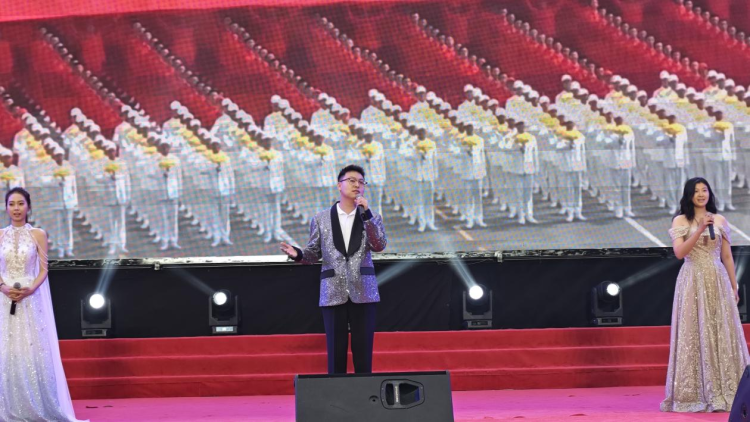 我院素质教师代表邱岳老师与其他各院教师代表共同合唱《我们的歌》。舞台上,教师们以饱满的热情和真挚的歌声,传递出对教育事业的热爱与对学生的殷切期望。这一曲不仅是音乐的共鸣,更是各院教师间的情谊联结,用歌声为2025级新生奏响了温暖的成长序曲,让新生们在旋律中感受到学院大家庭的凝聚力与归属感。