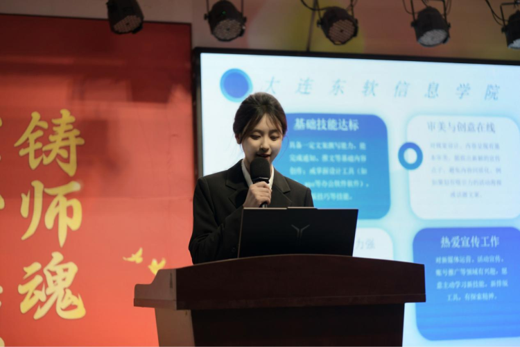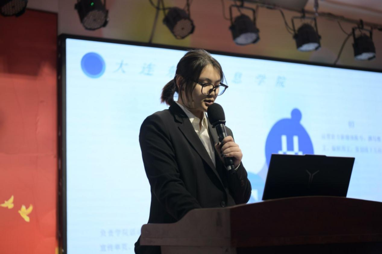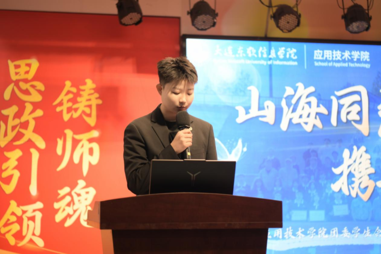 首先,应用技术学院第八届团委学生会及新媒体运营中心执行主席徐郑璐上台致辞。她代表组织对2025级新生表示热烈欢迎,介绍了并肩作战的其他主席团成员,并结合自身经历分享:学生会是服务同学的平台,过去一年通过素质教育、文体活动、学科竞赛、社会实践等工作为校园保驾护航;她鼓励新生以“自愿、志愿、服务、奉献”为初心,在这里收获能力、友谊与成长,期待与大家携手将组织打造成大东软“风向标”。