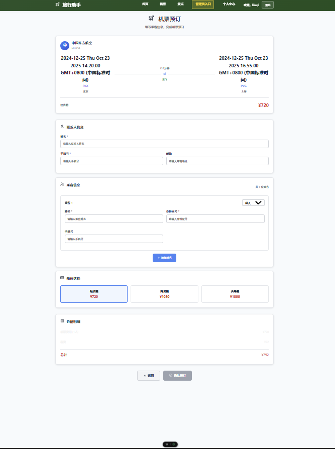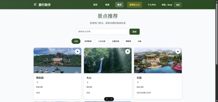 本作品《旅行助手》系统基于Vue3+TypeScript技术栈开发,具备高度的专业性与技术前瞻性。系统采用模块化设计与响应式布局,融合HTML5语义化标签与Vue Router路由管理。创新性体现在智能景点推荐与个性化行程规划功能,通过组合式API实现动态数据绑定。产教融合方面,项目严格遵循企业级开发规范,涵盖需求分析、安全设计到系统测试的全流程。实用功能覆盖机票预订、景点收藏与用户管理,支持多角色协同操作(用户/管理员),具备真实商业场景应用价值,体现了技术协同与业务协同的双重创新。
