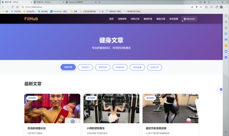 FitHub健身系统是一款聚焦用户个性化健身需求的综合性工具,整合训练指导、训练计划、健身饮食、健身文章与体态检测五大核心功能。系统支持按训练部位和难易程度筛选专业指导,用户可自定义训练计划与饮食方案,同步上传食谱;提供优质健身文章供学习,创新融入视频捕捉体态检测功能,精准分析体态问题。项目兼具专业性与实用性,功能覆盖健身全流程,操作便捷且贴合用户实际需求,助力用户科学高效开展健身活动,满足不同阶段健身人群的多样化需求。