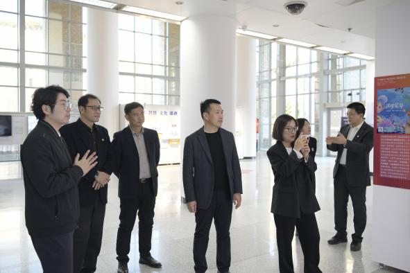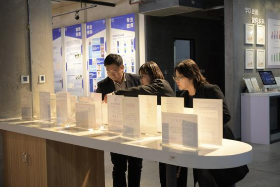 在张冬青院长等人的陪同下,吴允副校长一行先后参观了学校图书馆、数智展厅、SOVO展厅及数艺展厅。每到一处,来访嘉宾都认真聆听讲解,详细了解相关情况。图书馆丰富的馆藏资源、先进的智能化服务设施给大家留下深刻印象;数智展厅内前沿的数字技术应用成果,展现了学校在信息技术领域的办学特色与实力;SOVO展厅中充满创新活力的学生创业项目,让嘉宾们直观感受到学校“教育创造学生价值”的教育理念;数艺展厅里学生的优秀设计作品,则体现了学校在艺术与技术融合方面的育人成效。参观过程中,来访嘉宾不时驻足询问,对学校的办学环境、教学资源及育人成果给予高度评价。