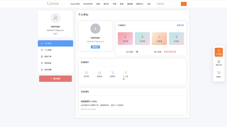 小米商城电商系统基于Vue3+TypeScript与Laravel+MySQL的前后端分离架构实现。系统覆盖商品、购物车、订单、支付与权限的完整业务闭环。系统创新引入混合加密、动态权限与数据可视化功能。